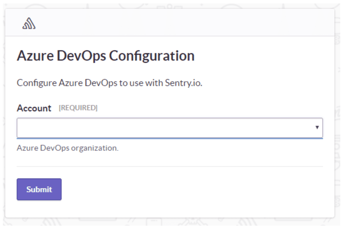 4. An Azure DevOps install window should pop up. Select the Azure DevOps account you'd like to link with Sentry, and press Submit.